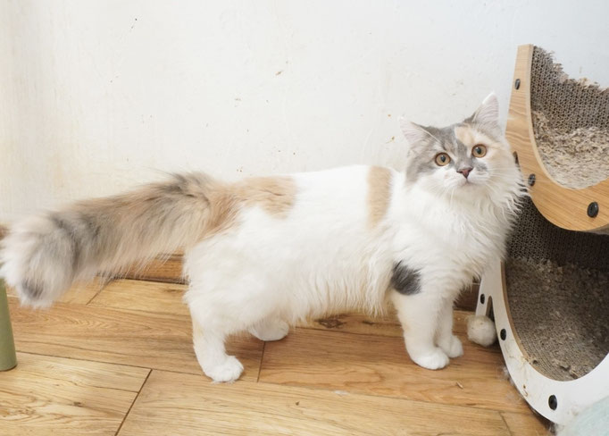 ダイリュートキャリコのロングヘアーのマンチカン。