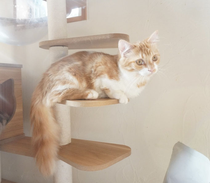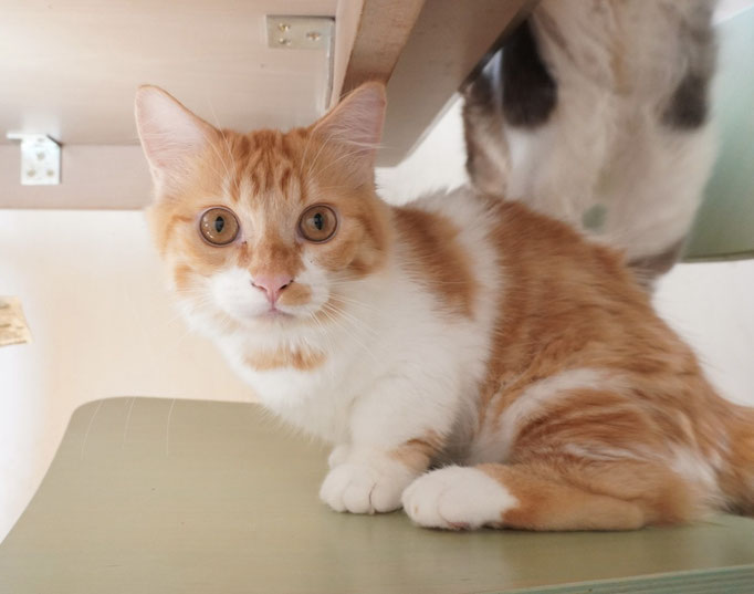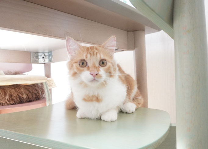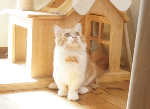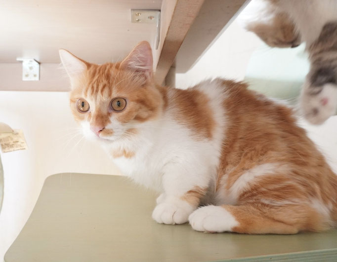 控えめな性格で、大人しく抱っこをさせてくれます。特徴的な寝姿で良く寝てる子。