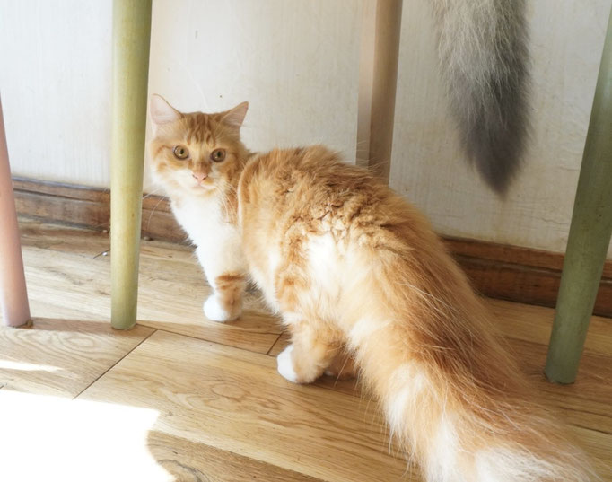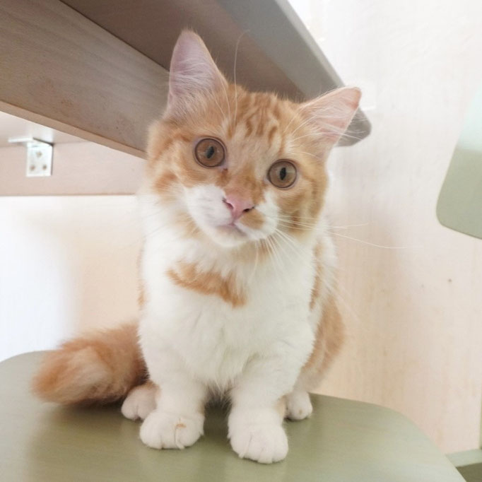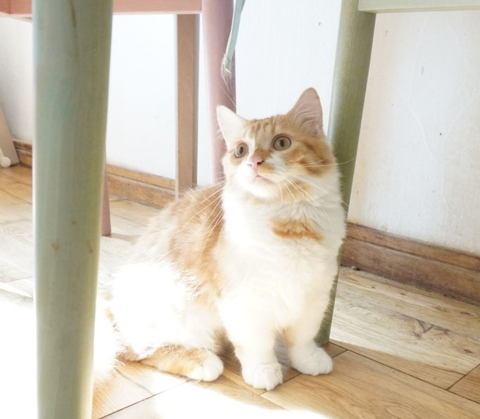 四足が白色で靴下を履いてるような柄はチャームポイント。